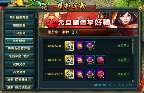 活動時間:2015年12月31日0點0分 至 2016年1月3日23點59分