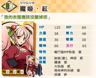 ※「魔姬・紅」的種族特徴及結緣後的能力值適用於「舶來系統」。
