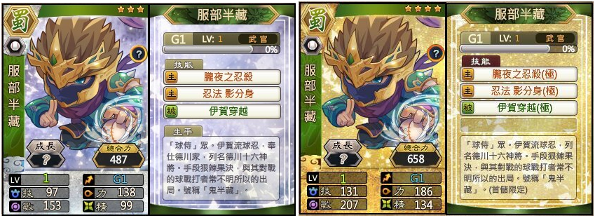 【通用金碎片x5+50元寶+A級銀卡服部半藏x1+S級金卡服部半藏x1+通用鑽碎片x3】