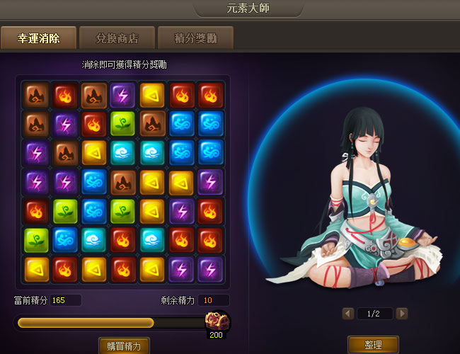 1. 每次元素移動需要消耗1點精力,成功消除即可獲得各類元神碎片或者星石的獎勵