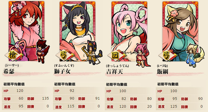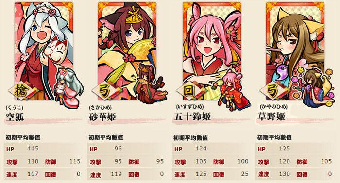 ※部份數值・成長率和一般的「空狐」「砂華姬」「五十鈴姬」「草野姬」有所差異。