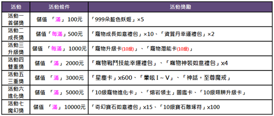 活動期間內,單日累積儲值金額達以下條件,即可獲得符合資格的所有獎勵。