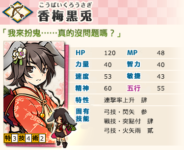 ※「香梅黑兔」的能力值相當魚稀有式姬,與一般的黑兔具有不同的特性/技/術。