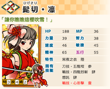 ※「髭切・凛」的種族特徵及結緣後的能力值適用於一般系統。
