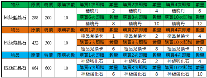| 法陣優惠小型禮包 | 300 | 238 | 不限 |