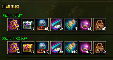 活動時間:伺服器合服開啟後活動內容:合服後伺服器正常開啟,只要≥30級的登錄玩家均可獲得全服感恩回饋大禮包(綁定)*1,VIP玩家還有更大驚喜等著您!
