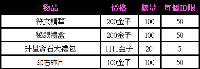 活動內容:活動期間遊戲內商城限量發售以下商品(購買後綁定):