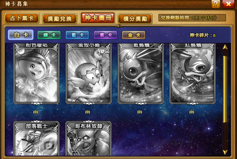 Ø 點擊“神卡圖冊”可以查看當前擁有的神卡種類和數量