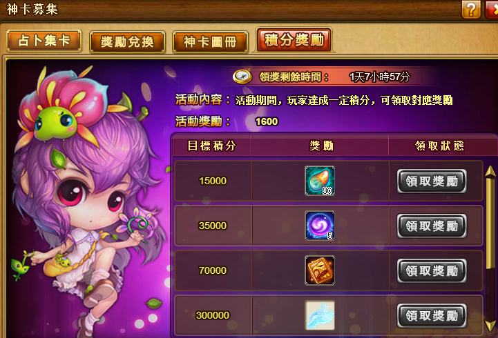 Ø 占卜獲得的積分可用於換取積分獎勵,達到相應的積分即可立即領取相應的獎勵,積分越高獲得的相應獎勵也越豐厚!