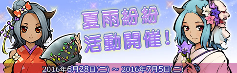 將「小雨點繡球花」在活動試練中納品,可獲得特別版「天狗(楓)」或強化系物品。