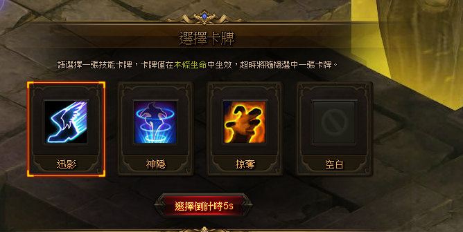 晉級賽和決賽內每個玩家初始可獲得隨機3張技能卡牌,每次復活都可選擇本次生命所裝備的技能,玩家可以根據自己的策略選擇卡牌的使用順序,以達到出奇制勝的效果。