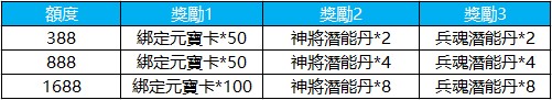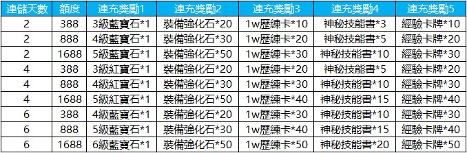 活動時間:2016年10月7日00:00~2016年10月14日23:59活動範圍:《仙域》全伺服器所有玩家活動伺服器:《仙域》全伺服器 每天儲值獎勵: 連續儲值獎勵: 活動規則:1.活動期間內不限儲值方式,成功儲值元寶達指定額度可領取該檔次獎勵。2.活動獎勵需自行由活動介面中領取,超過時間未領取將無法協助補發。3.所有活動獎勵物品皆為綁定無法交易。4.《仙域》營運團隊擁有活動所有修改的權利,活動內容如有變更皆以官方公告為主。