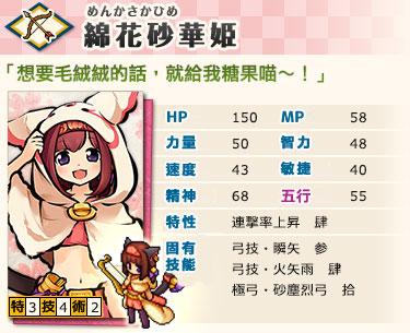 ※「綿花砂華姬」的種族特徵、結緣後的能力值適用於「舶來系統」。