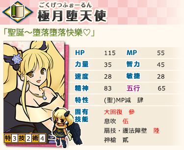 | 極月墮天使的符紙組合 | 極月墮天使的符紙x1 金召喚券x3 | 2000神力 |