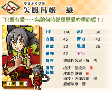 此外金、虹召喚中,「矢風呂姬・戀」在舶來稀有內的召喚機率為其他舶來稀有式姬的1.5倍!