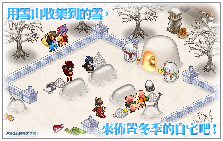 4) 收集「雪」後,可與「自宅前」的NPC「地精」交換各種擺設或道具。