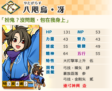 ※「八咫烏・冴」的種族特徴及結緣時的能力値適用「一般系統」。