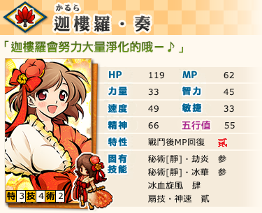 ※「迦樓羅・奏」的種族特徴及結緣時的能力値適用「一般系統」。
