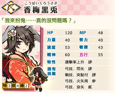 ※「香梅黑兔」的種族特徴及結緣時的能力値適用「一般系統」。