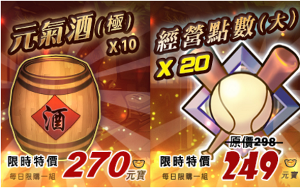 | 經營點數(大)x20 | 特價249元寶 |
