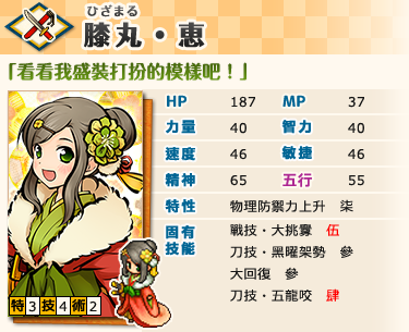 ※「膝丸・恵」的種族特徴及結緣時的能力値適用「一般系統」。