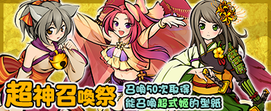 期間內,金、虹、虹+召喚中,超級・神話級式姬出現機率上昇。