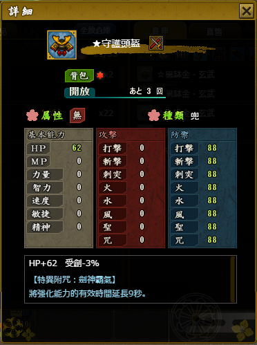 ※「★守護頭盔」是武士或刀式姬專用裝備。