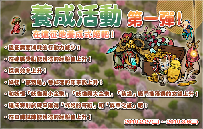大型挑戰模式「蝦夷」即將要上線了!所以在此舉辦方便養成式姬的活動!
